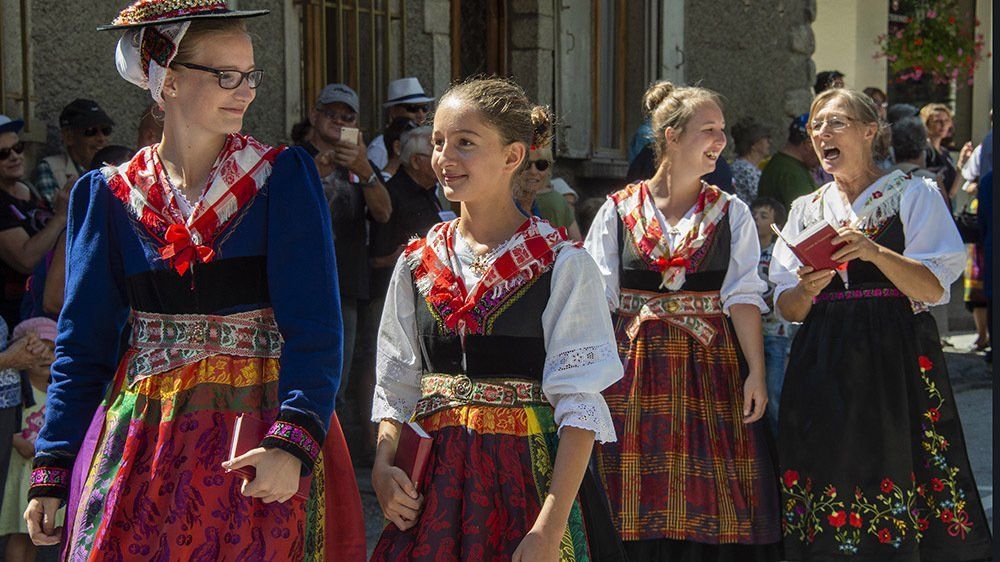 Évolène (Canton Vallese) 2018 Partecipazione al corteo della "Fête de la Mi-été", 15 agosto